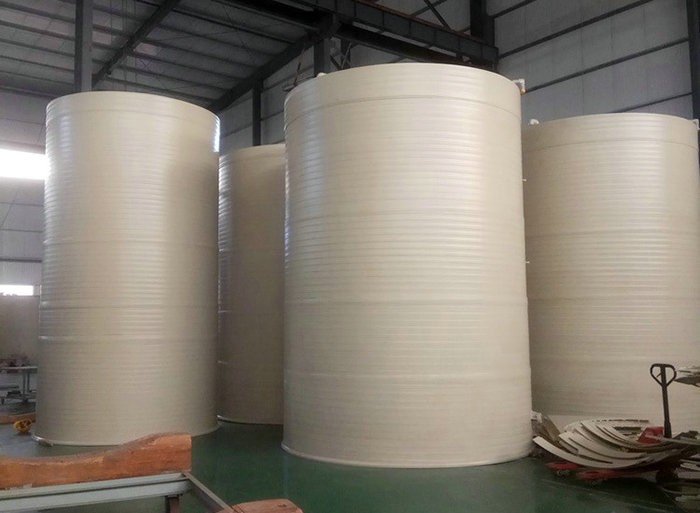 4、加工需要采用鋼制模具,在加工前需要采用天然氣預(yù)熱,開機(jī)成本大,PP貯槽直接采用聚丙烯板材卷成罐體,成本小;